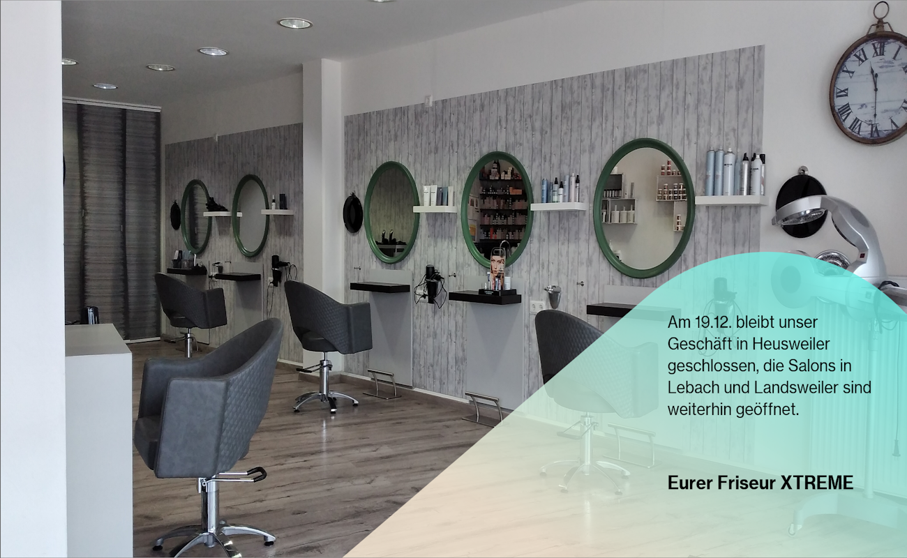 Hallo, ich bin Bettina und arbeite seit 2020 bei Friseur X-TREME. Ihr findet mich am Dienstag in Lebach, Mittwoch, Donnerstag und Samstag in Heusweiler und am Freitag trifft man mich im Salon in Landsweiler an.